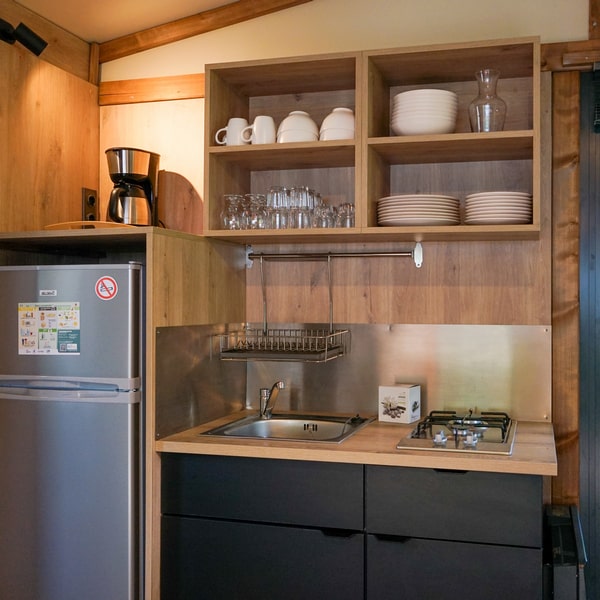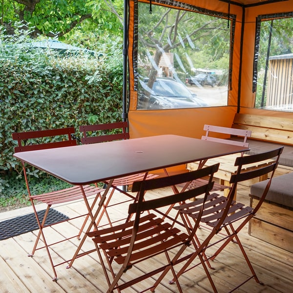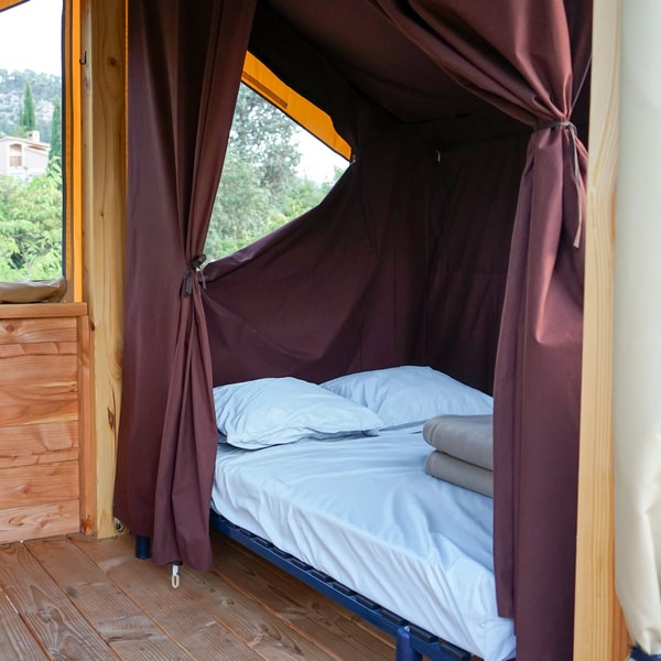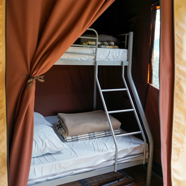 Si vous recherchiez le confort d’un hébergement prêt-à-louer sans rogner sur l’authenticité du camping, notre tente Lonna est faite pour vous : un véritable cocon en toile et bois construit sur pilotis, idéal pour les séjours-étapes à vélo. Toute aménagée, vous n’avez plus qu’à vous installer et vous reposer après une journée à vadrouiller ou pédaler !