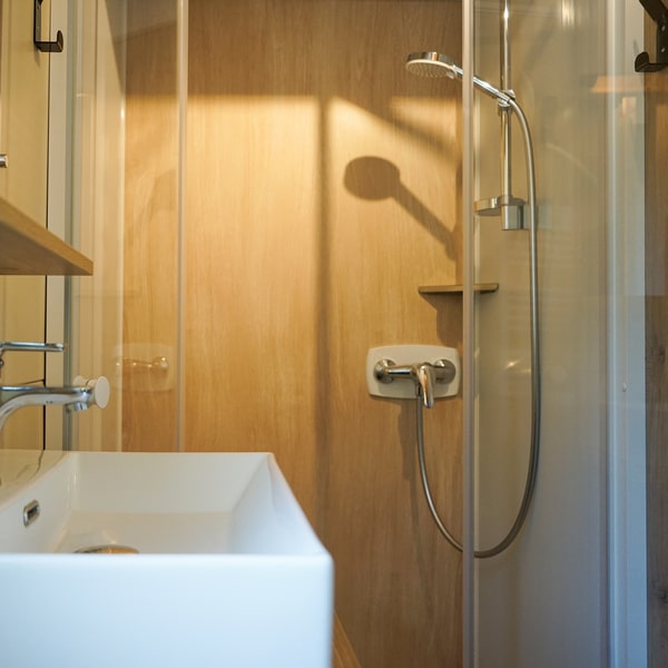 Pas de salle de bain, utilisation des sanitaires du camping.